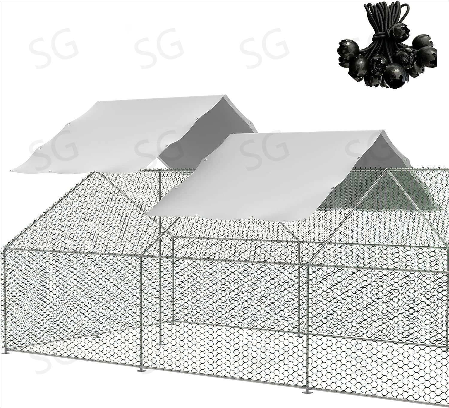 2.Safety Design: Lockable door with a latch makes this large chicken coop extra safety. And the chain link walling features steel wires and a sturdy galvanized steel frame that's resistant to wear and rust, allows you to avoid worrying about small animals being intruded by predators at night. The metal wire is treated with a dipping process that ensures protection against injury.